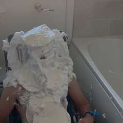 MessyLady_v2 was surprised by Piegirl22 with a big sloppy cream pie to the face